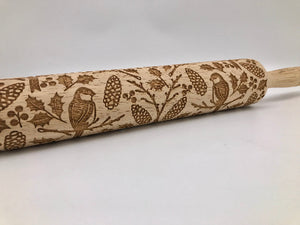 Embossed Chickadee Rolling Pin for Baking & Pottery